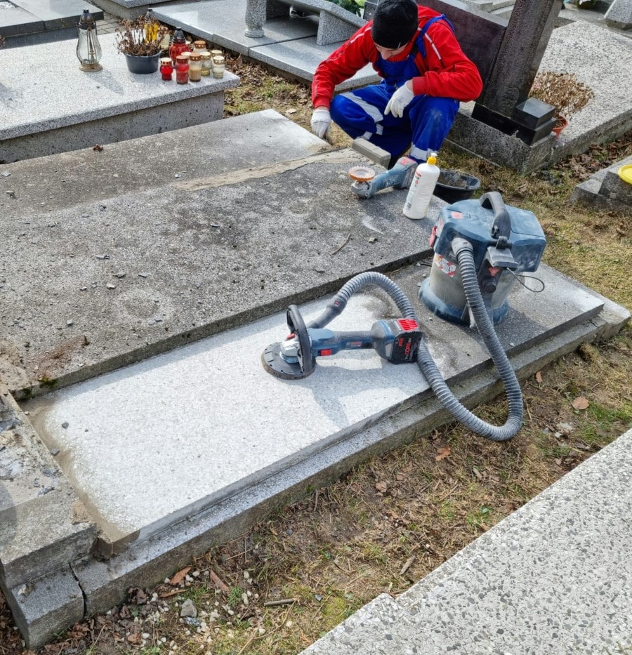 Maszynowe szlifowanie to jedyny skuteczny sposób odnowienia nagrobka z lastriko